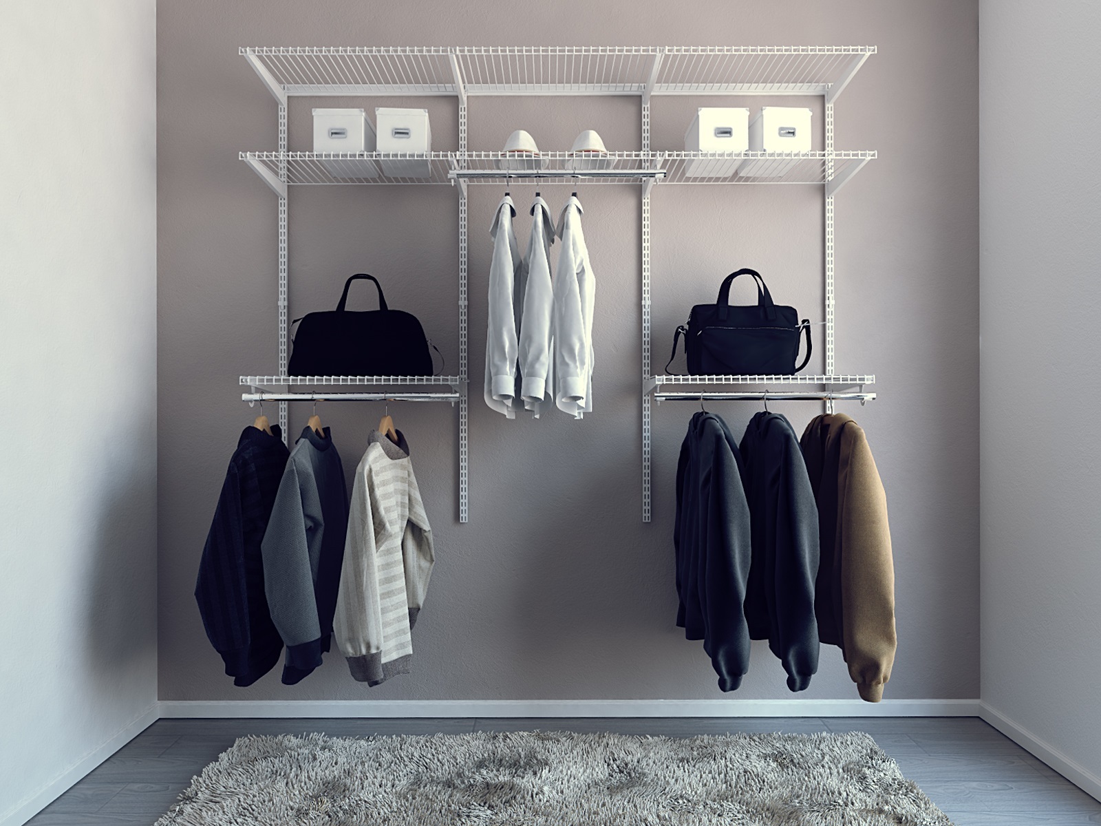 Базовый комплект гардеробной системы GS - это готовое решение для квартиры, дачи, гаража, обеспечивающее удобное хранение вещей. Система собирается в 6 разных конфигурациях, что позволяет подстраивать ее под размеры помещения и ориентироваться на личные пожелания по расположению отдельных элементов. В комплект входят несущие рельсы и навесные направляющие, полки, штанги, аксессуары, крепежные элементы. Можно докупить множество дополнительных компонентов для гардеробной системы.