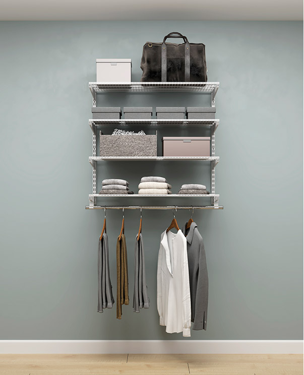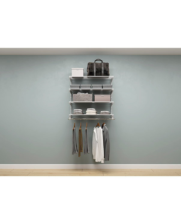 В комплект входят несущие рельсы и навесные направляющие, полки, штанги, аксессуары, крепежные элементы. Можно докупить множество дополнительных компонентов для гардеробной системы.