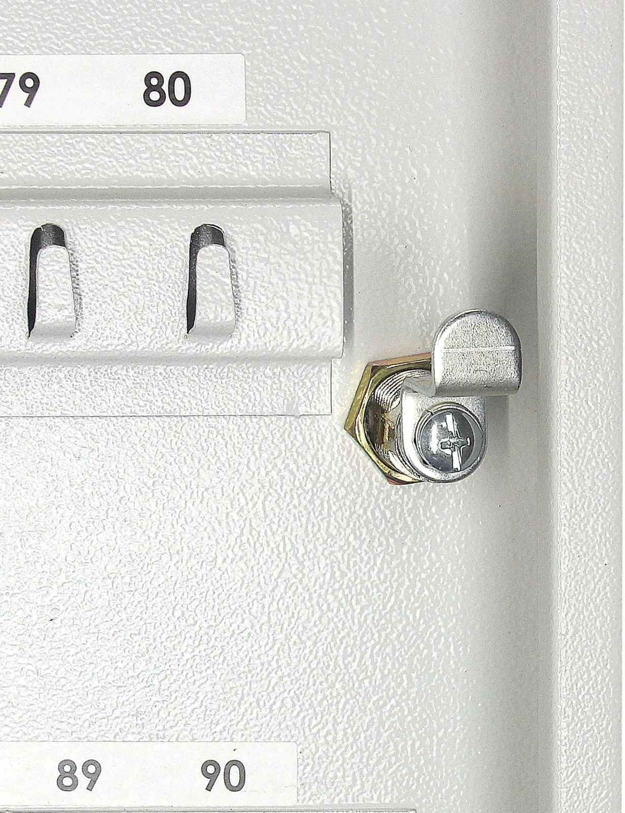 Ключница на 80 ключей представляет собой компактное устройство для удобного хранения большого количества ключей. Ключница комплектуется 8 планками с крючками, что позволяет легко организовать хранение и быстро находить нужный ключ.На задней стенке корпуса расположены отверстия для крепления. В дверь установлен замок типа «Cam-Lock».