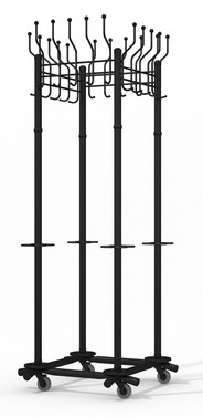 Групповые четырехсекционные вешалки типа Гардикс 4 (К) на колесах позволяют организовать хранение большого количества одежды на минимальной площади, обеспечивая доступ к ней, поворачивая ее нужной стороной.