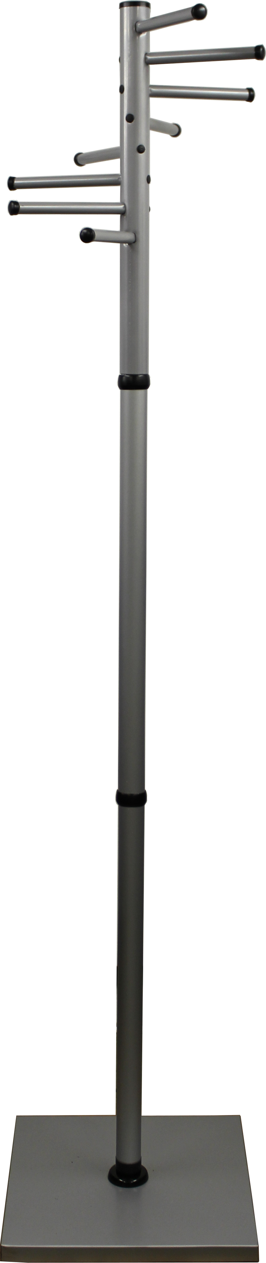 8 крючков из трубы диаметром 10 мм для верхней одежды равномерно распределены в виде спирали по окружности стойки диаметром 38 мм.