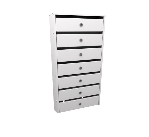 Узкие 7-и секционные почтовые ящики для подъездов многоквартирных домов серии «Сигма» с задней стенкой. Корреспонденция располагается в секции под углом 25 градусов.