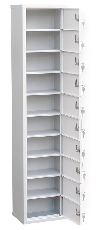 Десять запираемых ячеек.