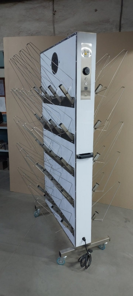 Cушильное устройство предназначено для просушки 40 кондитерских пакетов. Данные сушилки используются внутри помещений на предприятиях пищевой отрасли. Встроенная УФ-лампа оказывает дезинфицирующее действие. 2 поддона для сбора стекающей воды. Сборка происходит путем прикручивания винтами воздуховодов и ножек к сушильному модулю.Подключается к бытовой розетке.