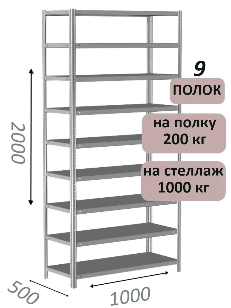 Стеллаж MS Hard 200х100х50, 9 полок