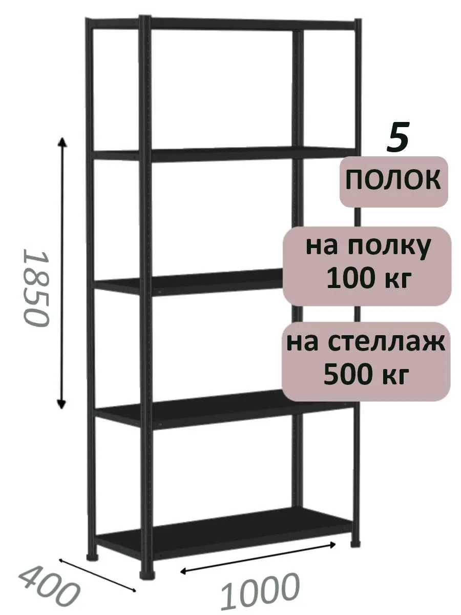 Стеллаж MS Standart 185х100х40, 5 полок, чёрный