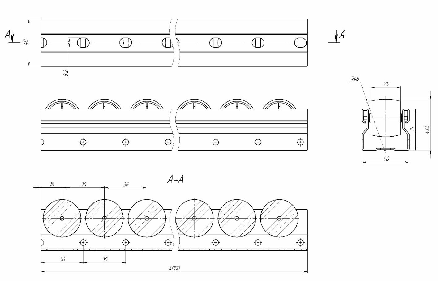 Длина роликовой дорожки - 4000мм (возможно наращивание длины через соединитель)