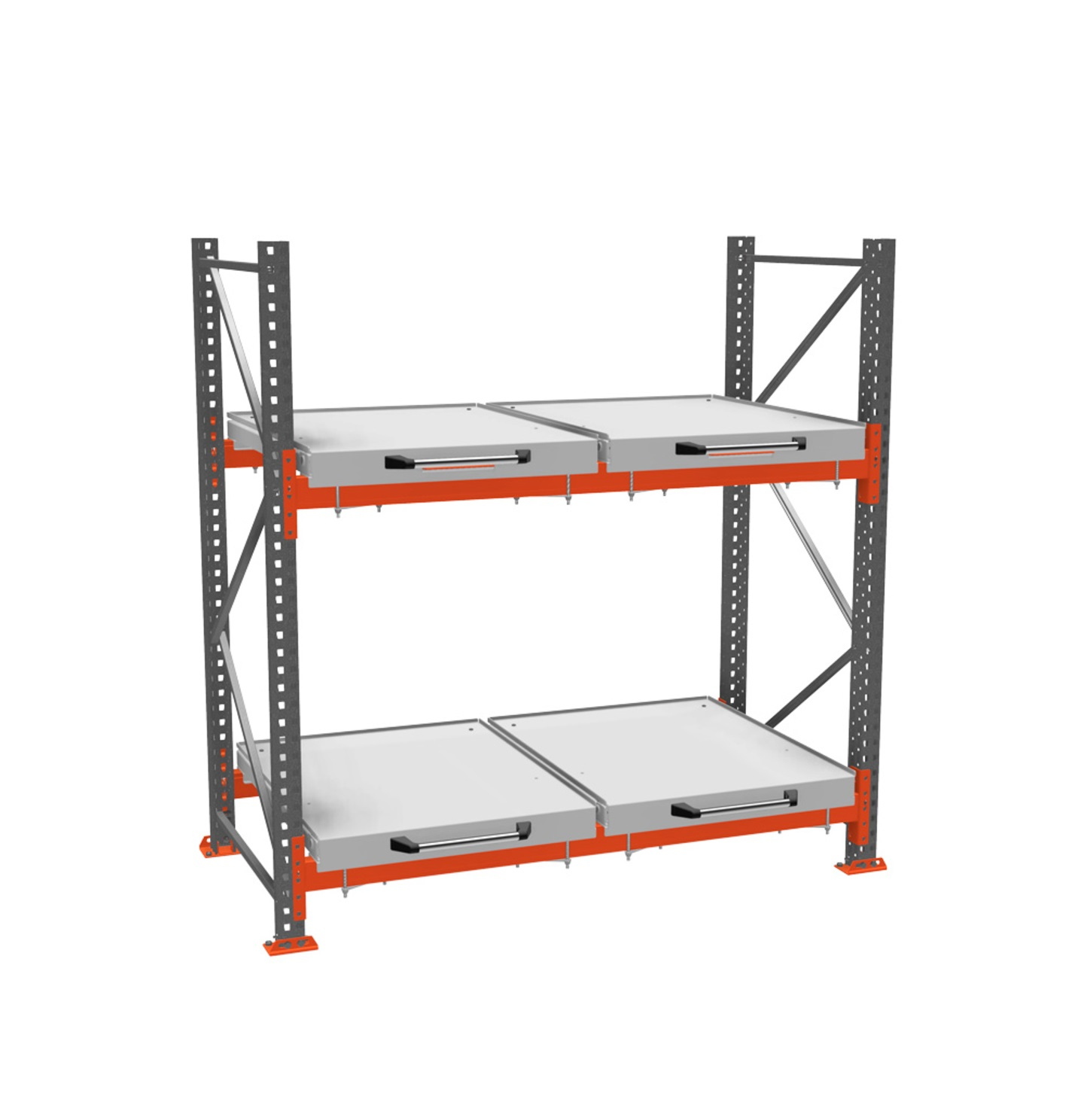 Выкатные платформы позволяют использовать кран для загрузки тяжелых грузов. К основному стеллажу можно присоединить необходимое количество дополнительных секций.