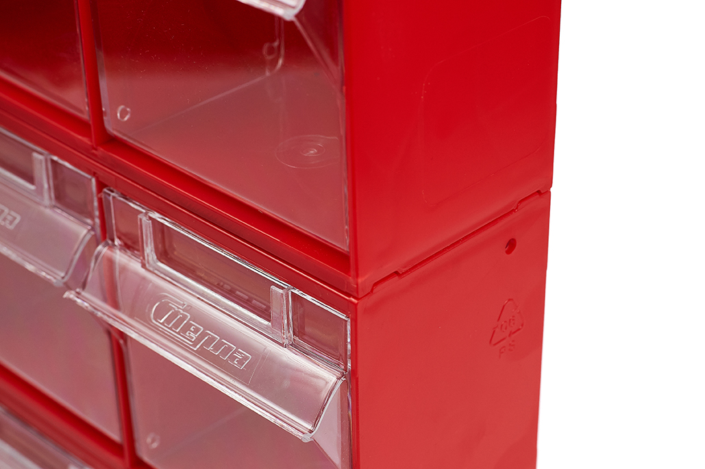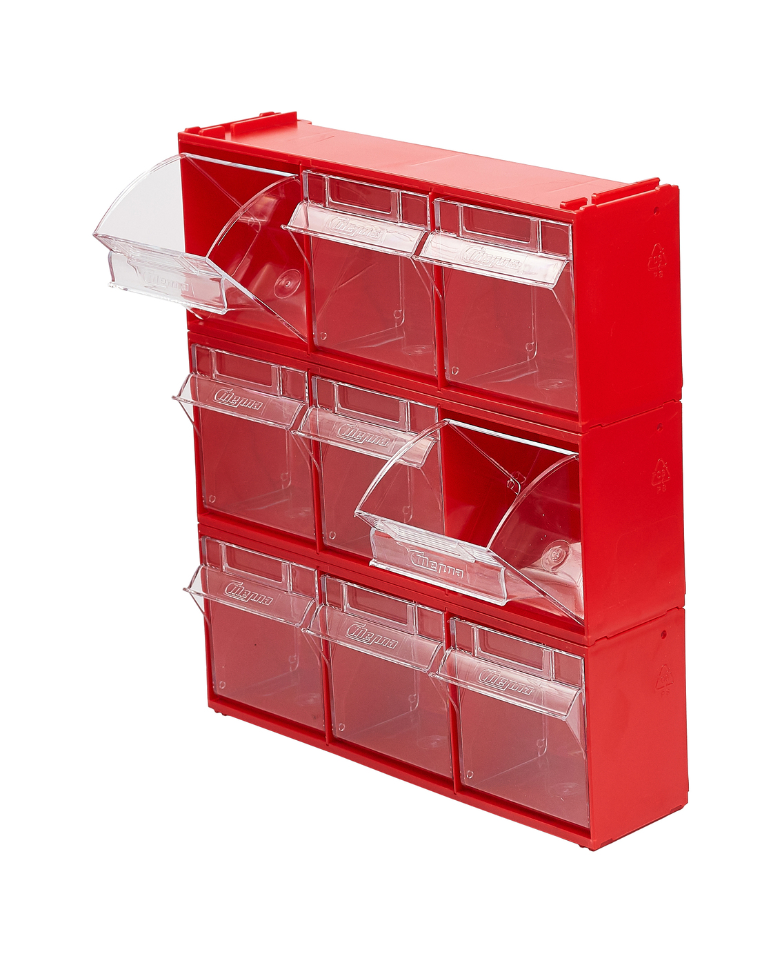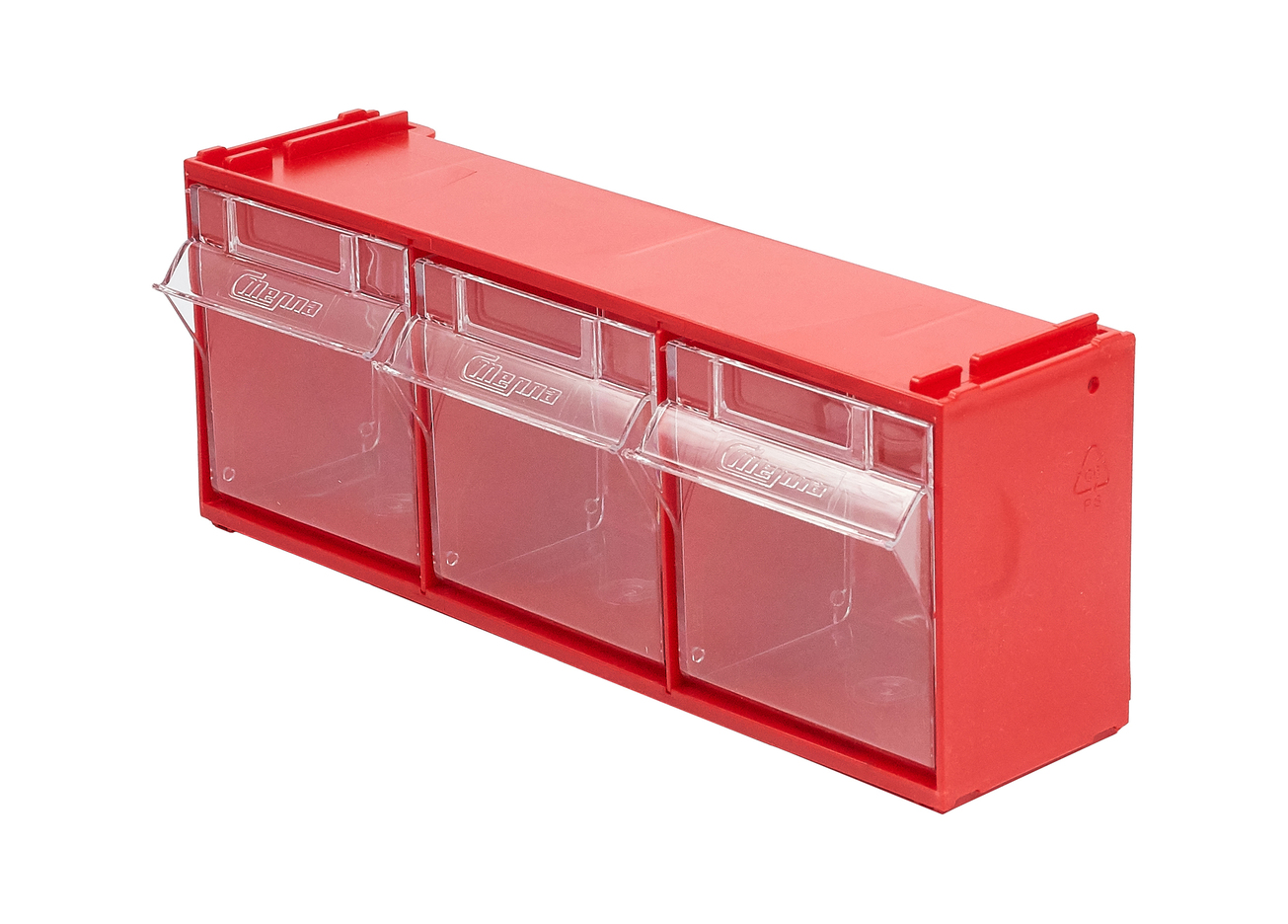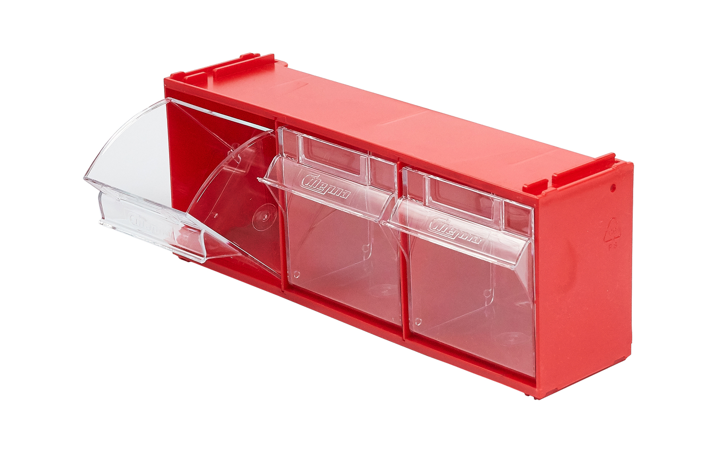 Короб откидной Стелла-техник F-300-3 (300х98х112мм.), красный, прозрачный, служит для хранения мелкоштучных предметов. Данная система хранения не подвержена случайному опрокидыванию. Откидные стандартные ячейки обеспечивают быстрый доступ к необходимым предметам. В случае необходимости полного высыпания или наполнения внутренние ячейки легко извлекается. Полезный внутренний размер ячеек 88х65х70мм. Специальный пластик, из которого выполнен короб, выдерживает значительные нагрузки и обладает оптимальной эластичностью. На основе данных коробов можно сформировать многоярусную систему хранения, выстраивая вертикально. Данный короб, через отверстия на задней стенке, легко можно прикрепить к стене или установить на специальные кронштейны (Артикул: Кронштейны-FOX-750). Обзорность содержимого сквозь прозрачные внутренние ячейки, наличие отсека для информационных бирок, легкое извлечение внутреннего короба для опустошения и наполнения, все это является неоспоримым преимуществом откидных коробов серии F. Температура эксплуатации от -10 до +70С.