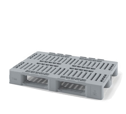 Усиленный перфорированный пластиковый поддон на трёх полозьях серый 1200х800х160 (02.108.92.PE)
