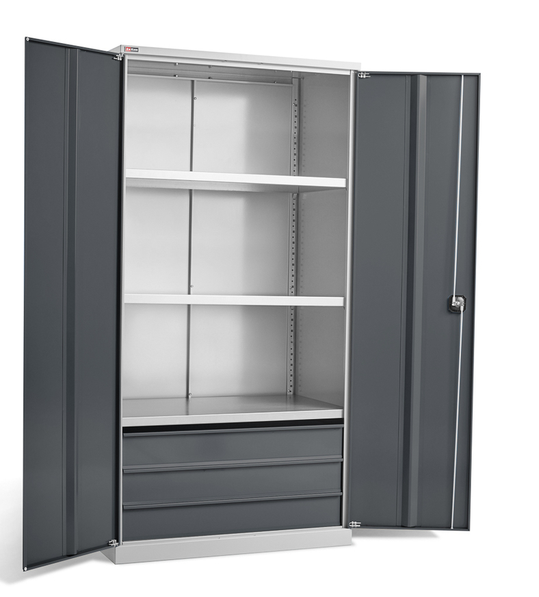 Шкаф укомплектован 3 оцинкованными полками и 3 выдвижными ящиками.