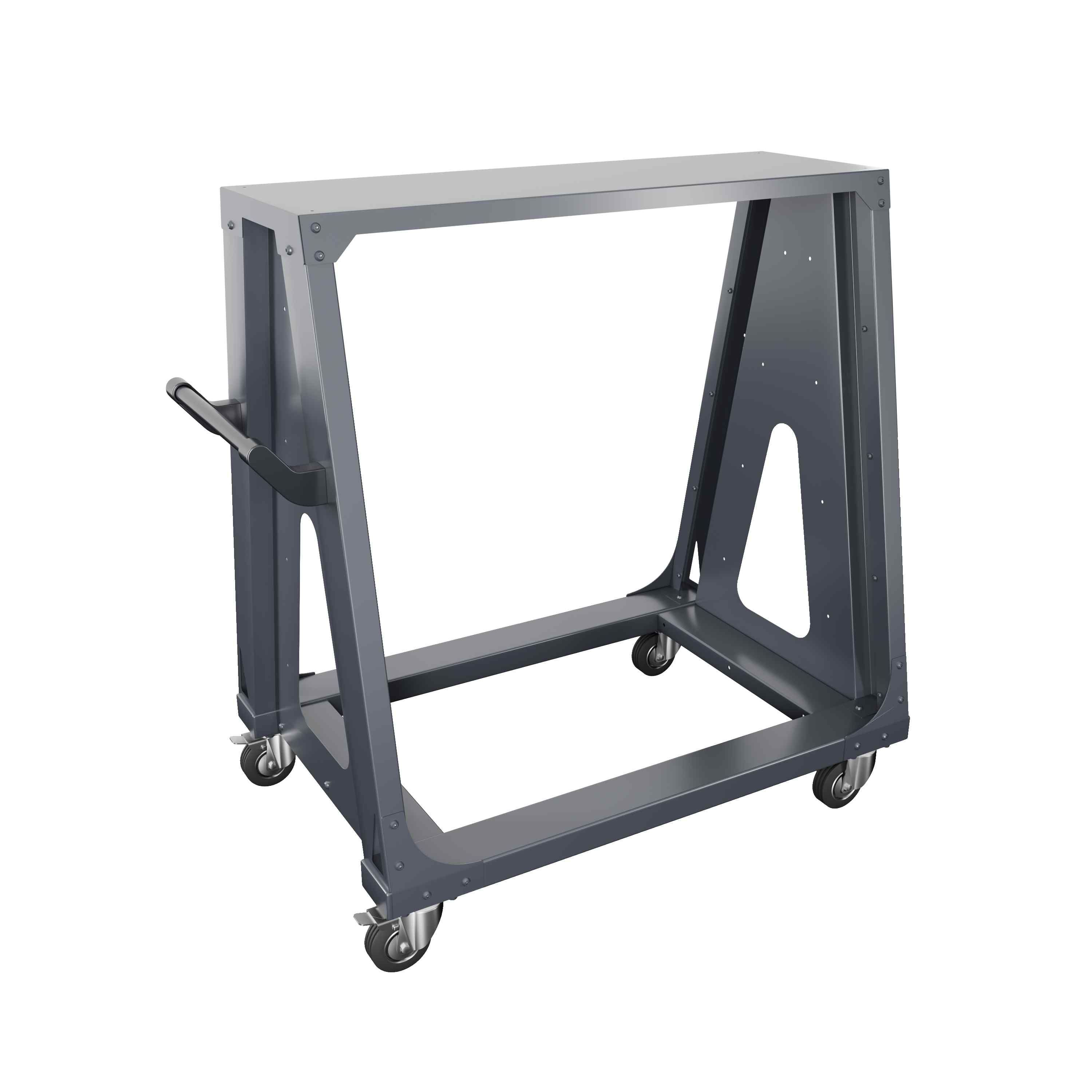 Изготовлена из прочного металла, что обеспечивает долговечность и устойчивость к механическим повреждениям. Тележка оснащена колесами, которые облегчают её перемещение по рабочему пространству.