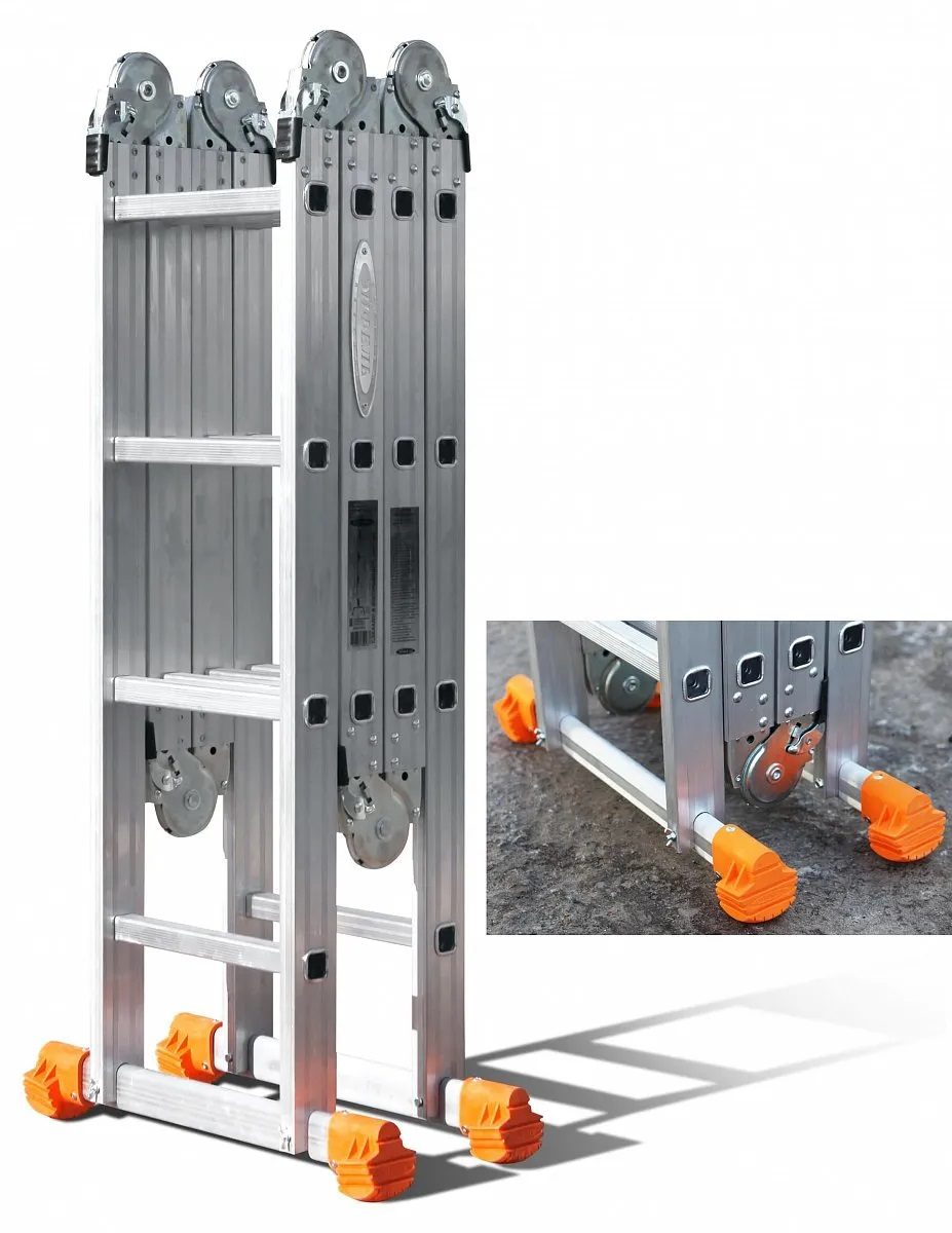 Универсальные лестницы-трансформеры для любых нужд. Идеально подходят как для работы на большой высоте в форме приставной лестницы, так и для использования в качестве помоста. 6 автоматических стопорных шарниров из стали и 2 поперечные траверсы с противоскользящими башмаками обеспечивают высокую устойчивость и бесзопасность. Ширина моделей Классик - 310 мм.