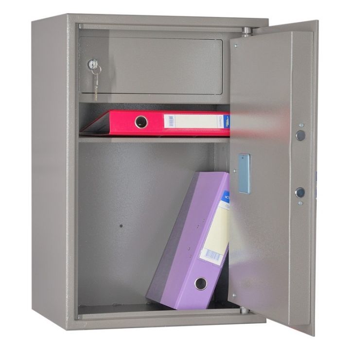 Шкаф односекционный, оснащен съемной полкой и Трейзером. В двери установлен замок электронный сейфовый. Шкаф соответствует всем требованиям МВД России.