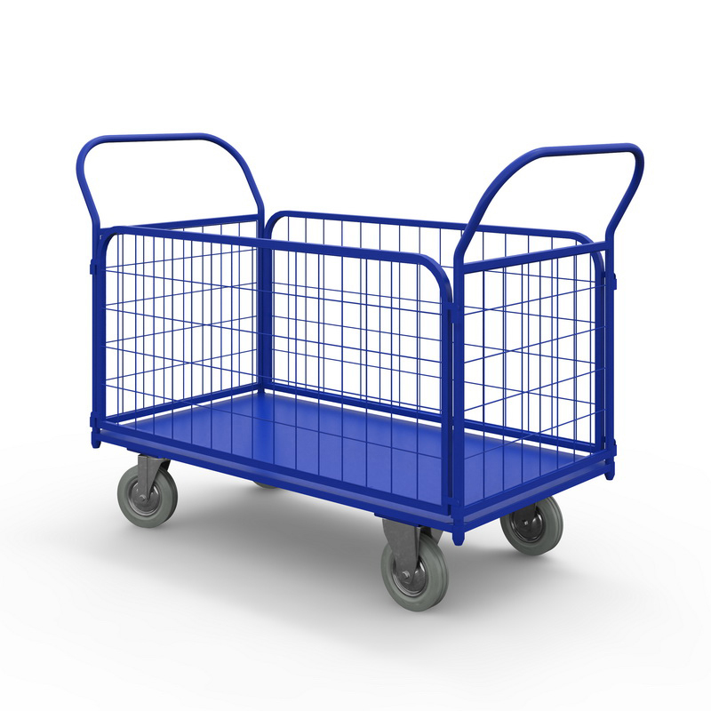 Тележка с бортами ТС - Тележка платформенная металлическая с сетчатыми бортами предназначена для перевозки мелкогабаритных и среднегабаритных товаров и грузов.