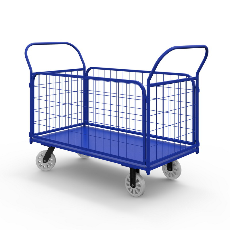 Тележка с бортами ТС - Тележка платформенная металлическая с сетчатыми бортами предназначена для перевозки мелкогабаритных и среднегабаритных товаров и грузов.