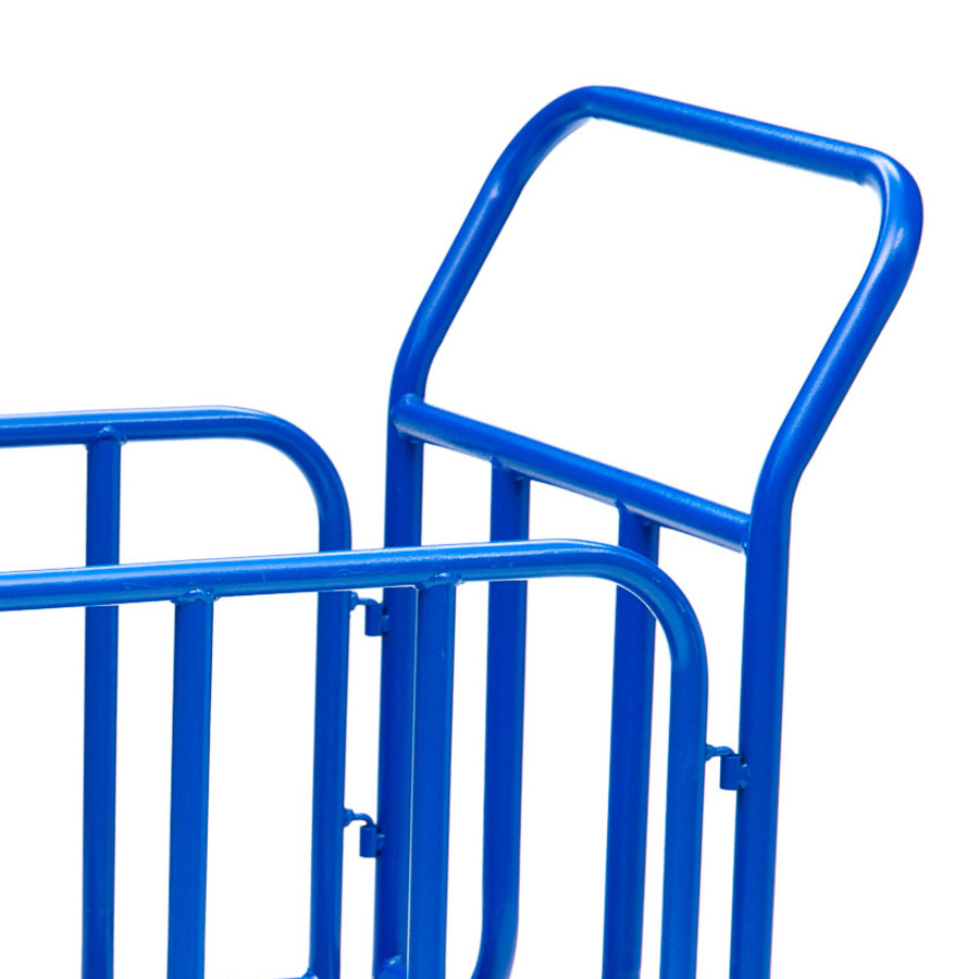 Платформенная 4-х колесная тележка с трубчатыми бортами КПО-500Т используется для транспортировки различных сборных грузов на оптовых базах и складах. Размер платформы 800х1200мм. Металлический борт защищает груз от падения и ударов, что позволяет перевозить хрупкие предметы и сборные грузы. Ручки и борта тележки снимается для удобства транспортировки и компактного хранения. Высота боковых бортов 400мм., высота борта от платформы 480мм., высота ручки 750мм., каркас платформы труба диаметром 28мм. Настил металлический лист толщиной 1,2мм. ручка труба диаметром 28мм., толщина 1,5мм. Каркас борта труба диаметром 25мм., толщина 1,5мм. Платформа имеет уникальную рельефную, полимерную, противоскользящую поверхность. Цвет синий, шагрень. Для легкого перемещения тележка КПО-500Т комплектуется 2 поворотными и 2 неповоротными колесами, изготовленными из высококачественной литой резины.