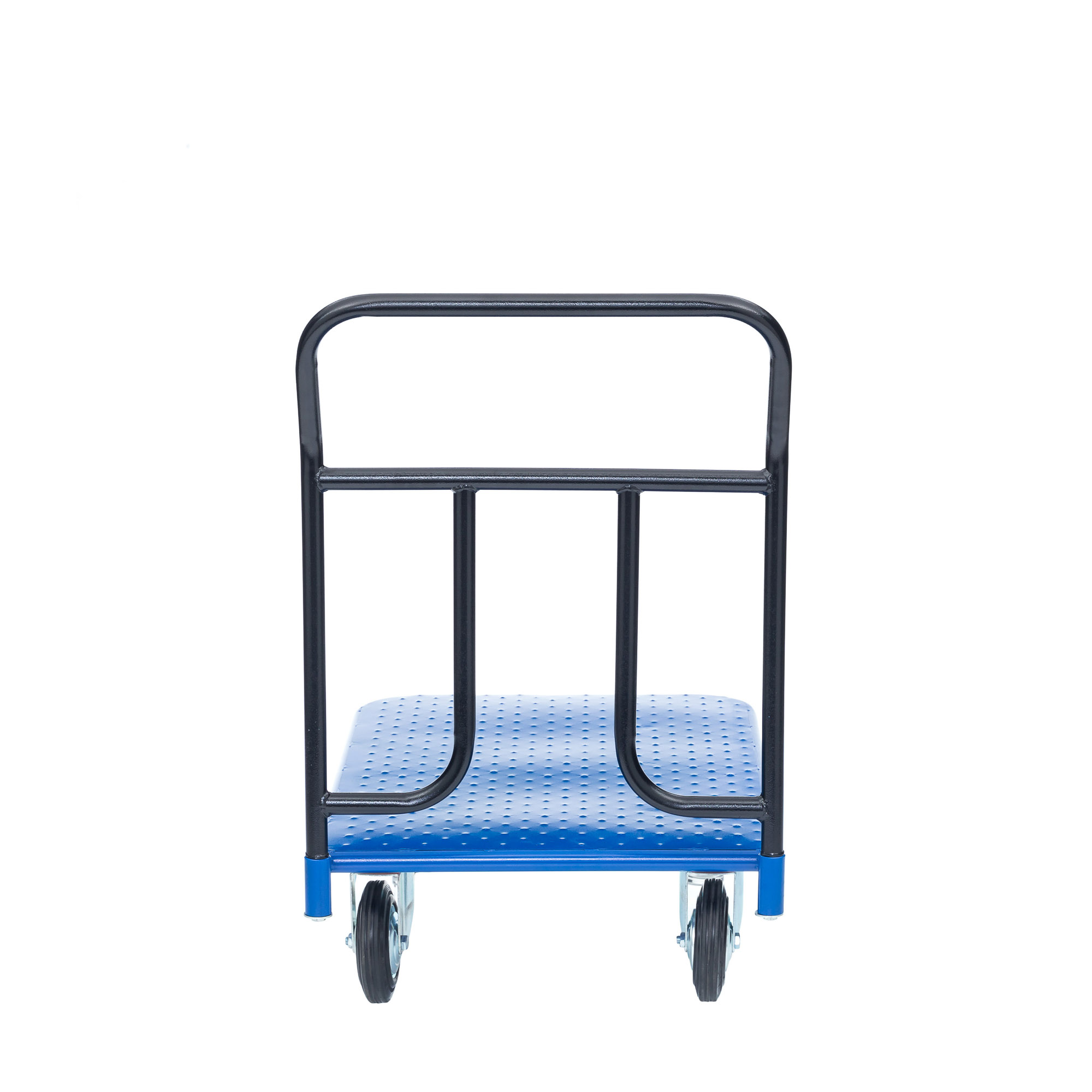 Платформенная 4-х колесная тележка КП-450 (700х1250) используется для перемещения различных грузов в складских помещениях. Ручка крепится к платформе болтами, для компактного хранения можно снять, высота ручки 750мм. Платформа имеет уникальную рельефную, полимерную, противоскользящую поверхность. Цвет синий, шагрень. Для легкого перемещения тележка КП-450 комплектуется 2 поворотными и 2 неповоротными колесами, изготовленными из высококачественной литой резины.