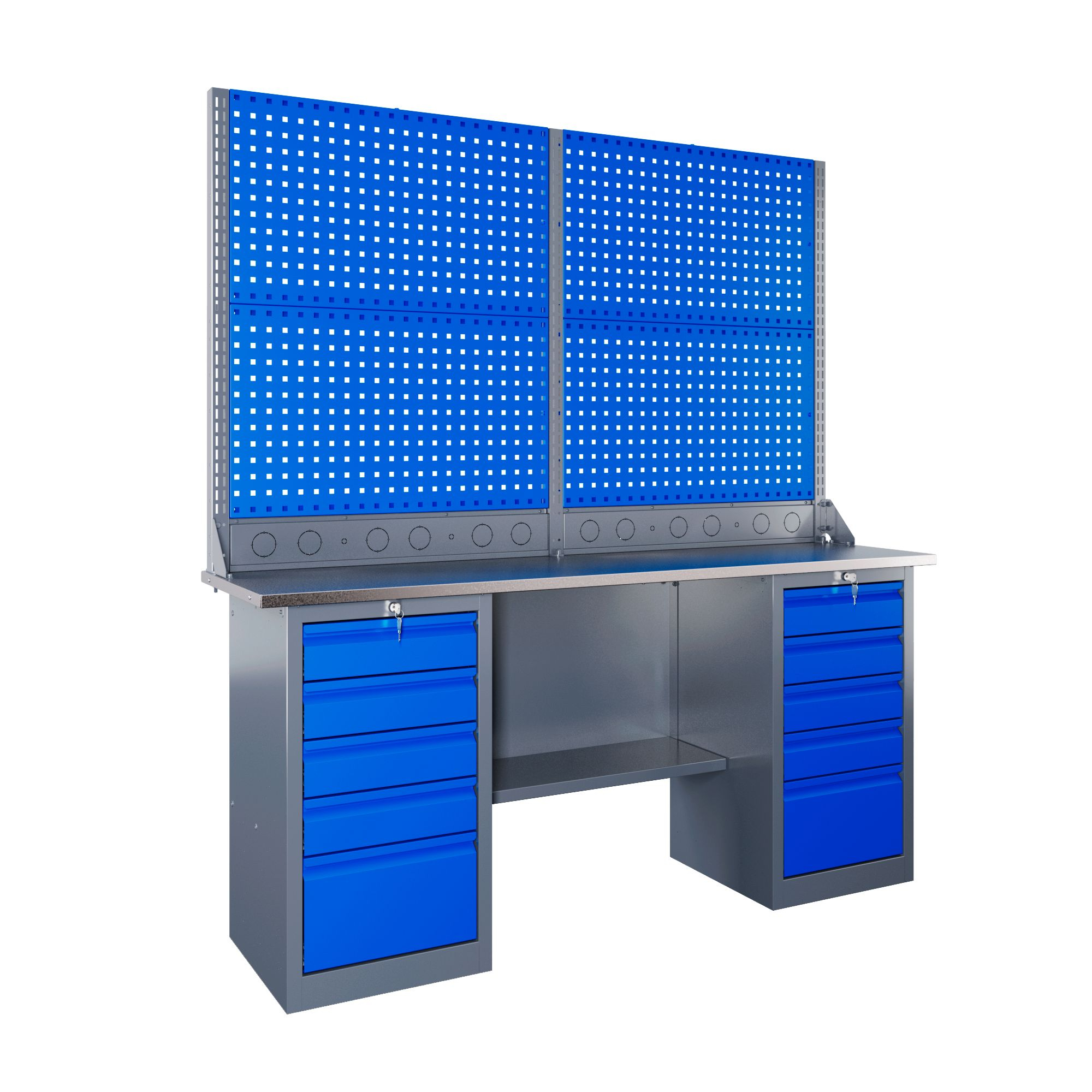 Самые компактные верстаки с глубиной столешницы 500 мм. Благодаря небольшой глубине, такие верстаки легко размещаются в ограниченных пространствах, например, в гаражах, мастерских и тд. Несмотря на компактные размеры, верстаки могут быть оснащены полками, ящиками и держателями для инструментов, что помогает поддерживать порядок и быстро находить нужные предметы.