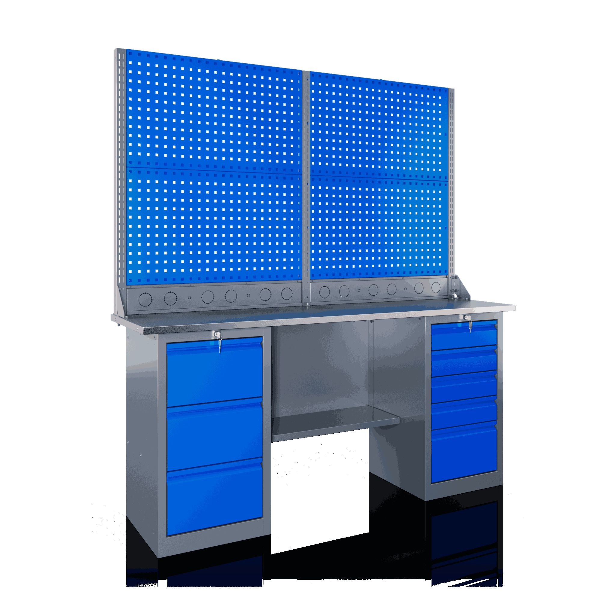 Самые компактные верстаки с глубиной столешницы 500 мм. Благодаря небольшой глубине, такие верстаки легко размещаются в ограниченных пространствах, например, в гаражах, мастерских и тд. Несмотря на компактные размеры, верстаки могут быть оснащены полками, ящиками и держателями для инструментов, что помогает поддерживать порядок и быстро находить нужные предметы.