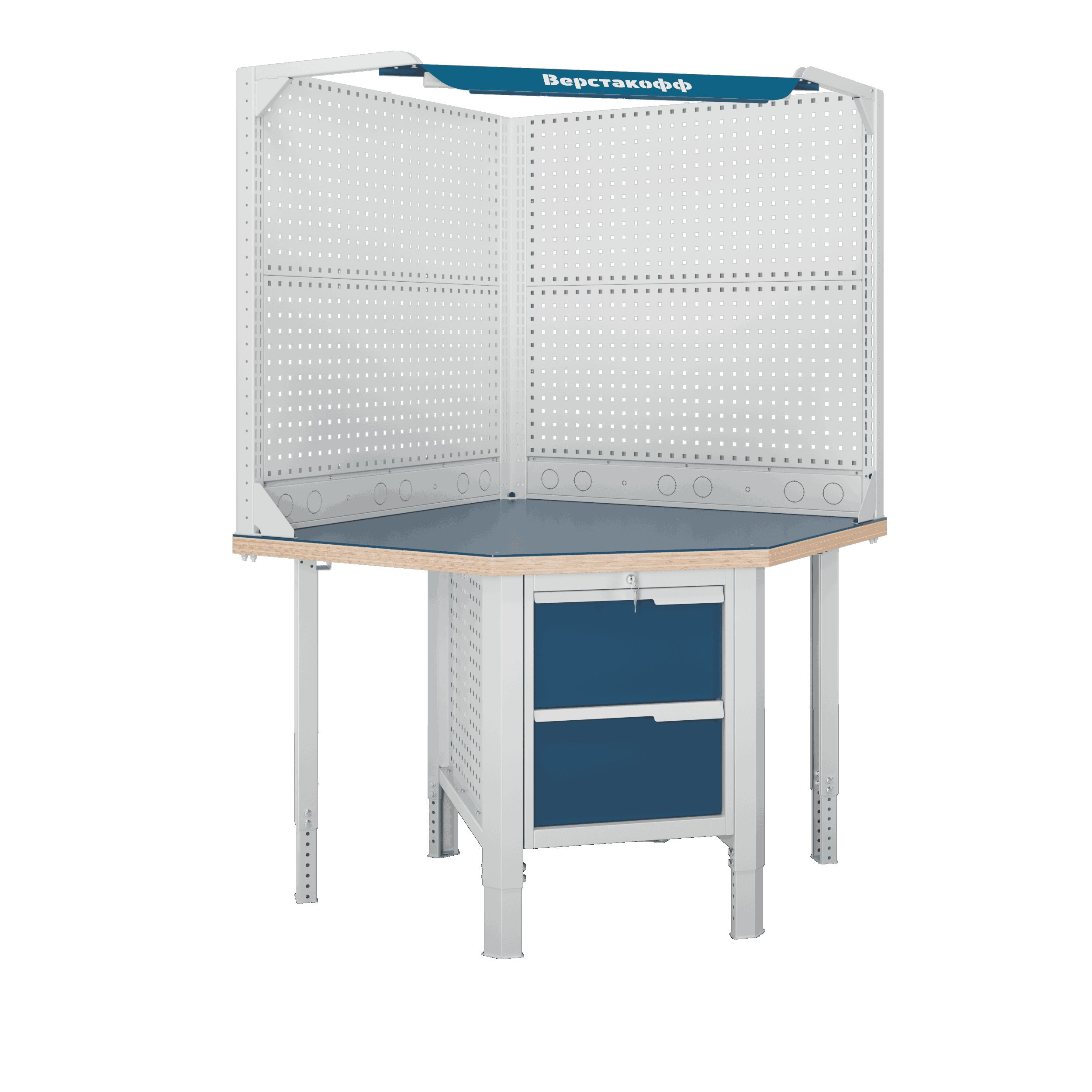 Блок стыковки углового верстака серии Constructor U5 разработан для обеспечения максимальной гибкости и надежности, учитывая конструктивные характеристики рабочего помещения.