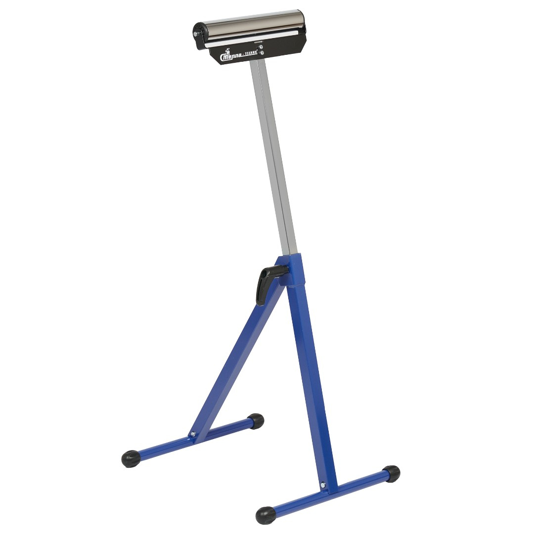 Опора роликовая стационарная телескопическая Стелла-техник идеально подходит для поддержки длинных заготовок при подаче на пильных, фрезерных, рейсмусовых или фуговальных станках.