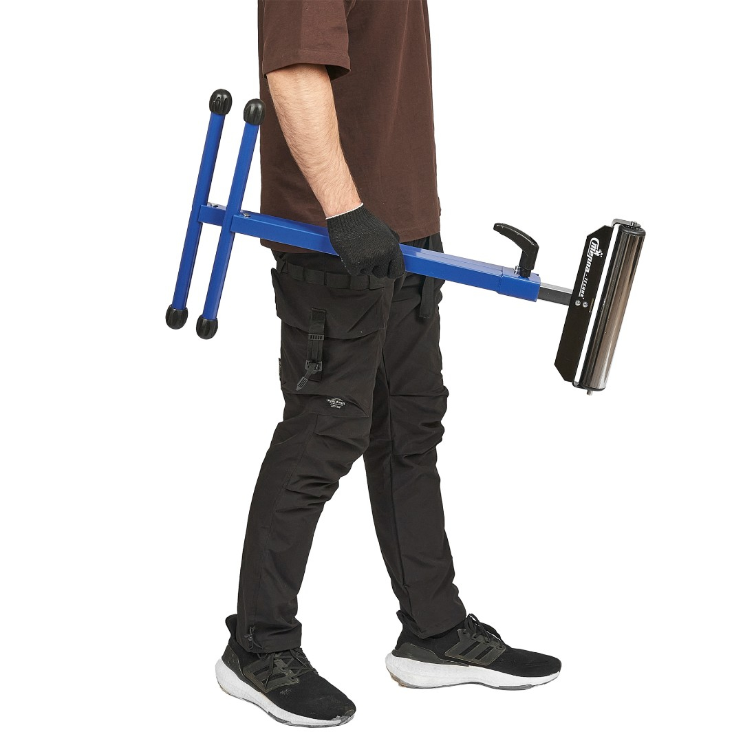 Опора оборудована удобной эргономичной пластиковой ручкой для фиксации высоты, а ножки шириной 440 мм, размещенные на расстоянии 500 мм друг от друга, обеспечивают стабильное положение устройства. Пластиковые насадки на ножках предотвращают повреждение поверхности пола.
