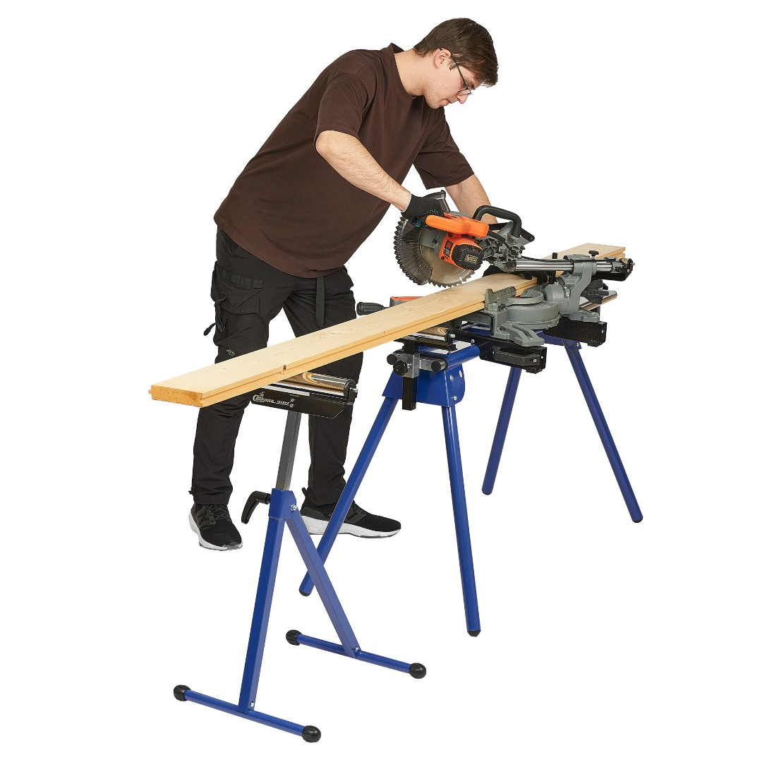 Ее основание с плавной бесступенчатой регулировкой по высоте (максимальная высота опоры в рабочем положении составляет 1115 мм.) обеспечивает совместимость со всеми обычными столами, станками и верстаками при продольном или поперечном распиле, фрезеровании и шлифовании.